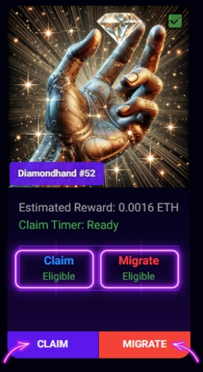 When any of your Hand Cards reach Level 4, also known as the DiamondHand level, you have the option to migrate it.