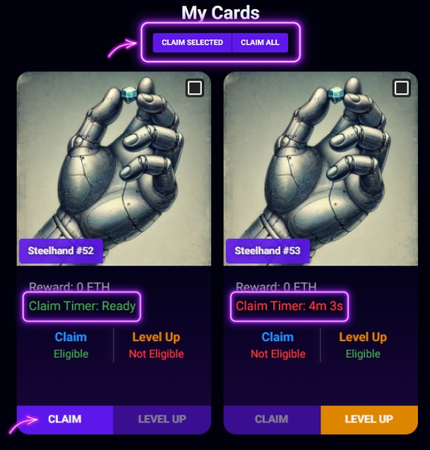 Each level has a predefined timer duration, and once it expires, the Claim button will be activated under your Hand Card.