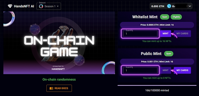 Enter the number of Hand Cards you want to mint and proceed. Remember! The more and higher-level Hand Cards you own, the greater your chances of earning higher rewards!